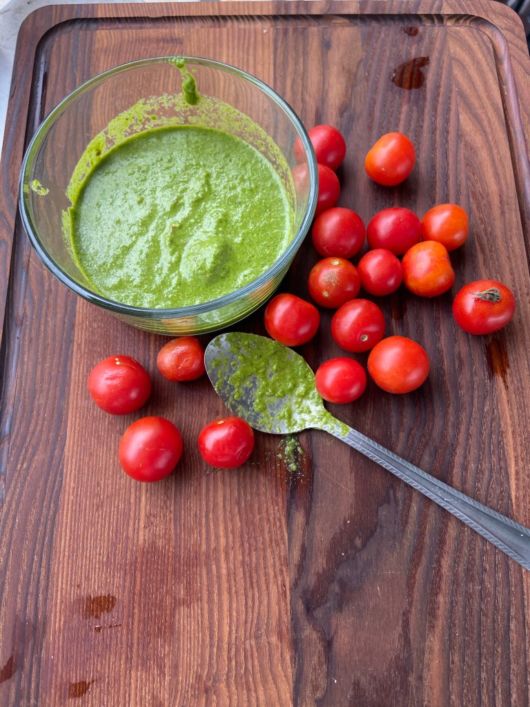 I’m so excited to share this recipe with you all! I went to Israel a few years back and returned newly inspired by the Middle Eastern/Mediterranean fare that I ate while there. I first learned about zhoug from my dear friend, Karen, who I met on my trip. She gave me some Zhoug that her father had made. I’m embarassed to say that I almost couldn’t tolerate the spice (I know, I know, I’m West Indian). Zhoug is traditionally made with cilantro, jalapeños (or another spicy type of pepper), cumin and cardamom. I made just as spicy a version, but made it in the blender, instead of a food processor. Feel free to use a mortar and pestle, but I’m gonna assume that most people don’t wanna go through the trouble to do the arm work🤪. This is my version, which is not traditional since I used less oil and added water to make it lighter. I would not call this an entirely authentic recipe, so please don’t call the food police on me😀